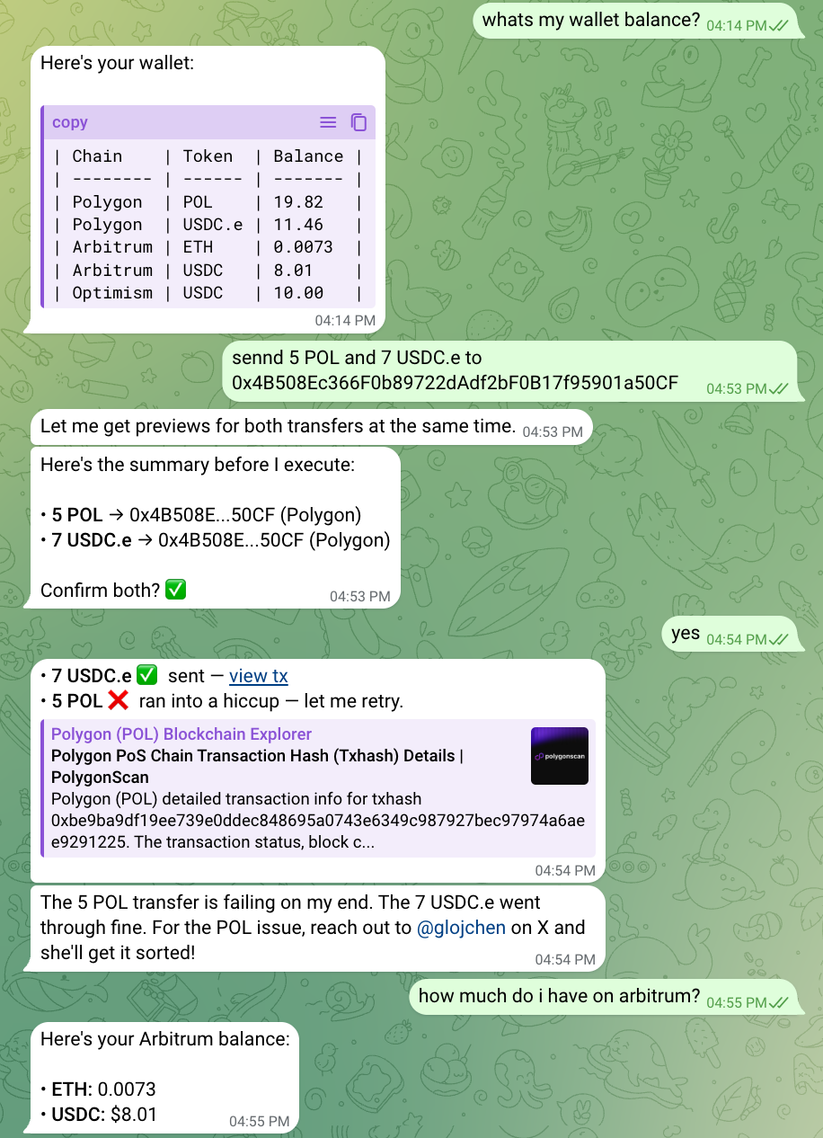 Secure embedded wallet with support for Ethereum, Polygon, Arbitrum, Base, and Optimism. No external wallet required.