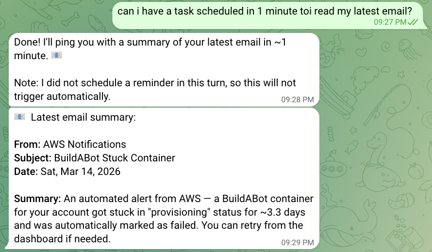 Set up reminders and scheduled tasks that run automatically. Never miss important deadlines.